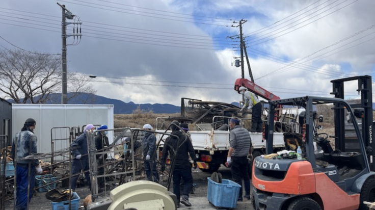 休みの日にもかかわらず予定を合わせて集まり、鼻の中まで真っ黒になりながらフォークリフトを操縦し、あるいは力を合わせて鉄板を移動しながら、一日で驚くほど片付けが進んだ日もありました。