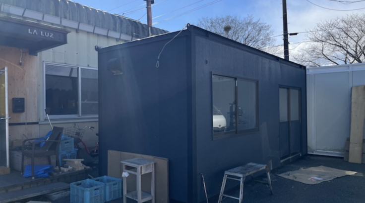 3月に入るとお取引のあるプレハブハウス屋さんから、本社工場にプレハブを貸していただくことができました。新事務所と作業スペースではやはり賄いきれない場所の問題に頭を抱えており、片付けが進む本社工場の一角に、仮の作業スペースを作ることになったのです。