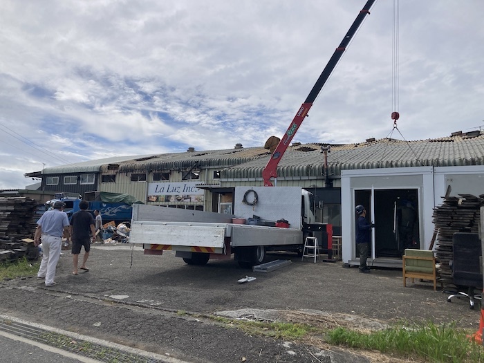 コンテナ屋さんのご厚意でお借りしていたコンテナ2台も、大型トラックに乗せられ元の場所へと帰りました。