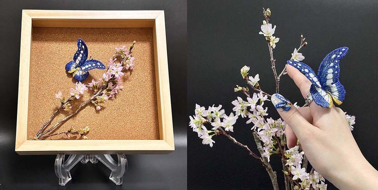 立体刺繡Sayokoの作品集+ヘレナモルフォ蝶のデジタル蝶イヤリング