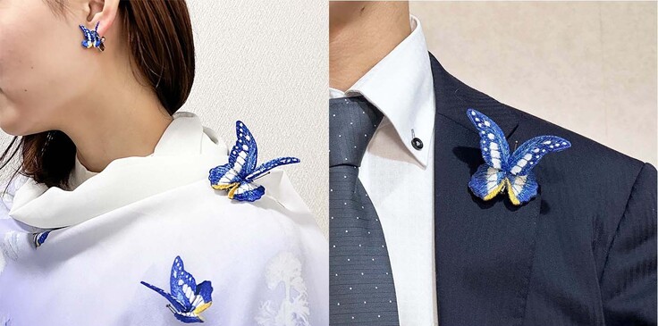 さらに、「ヘレナモルフォ蝶」はデジタル化も可能で、お揃いのイヤリングや付け爪、ネクタイピンなどと組み合わせていただくことで、より一層華やかにお楽しみいただけます。