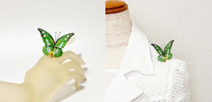 【残り5日|新作蝶のお知らせ】 ひと針の美しさ 指輪サイズの「枝豆色の蝶」(仮名)が誕生しました‼
