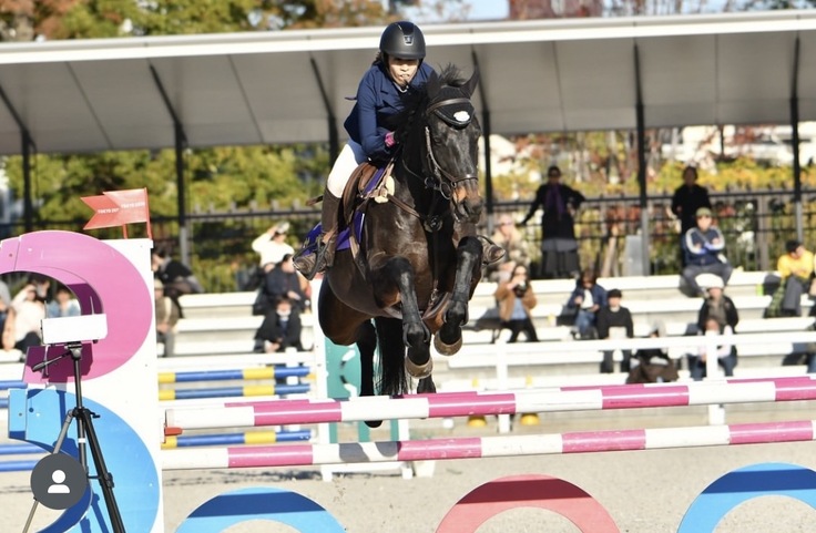 障害馬術競技にもたくさん出場し、昨年はRRC大会(引退競走馬杯)の決勝にも出場しました。普段は大人しく、今では初心者の方を乗せることができるまでに成長しました。今年もRRCの決勝に出場できるようにトレーニングを進めていきます!