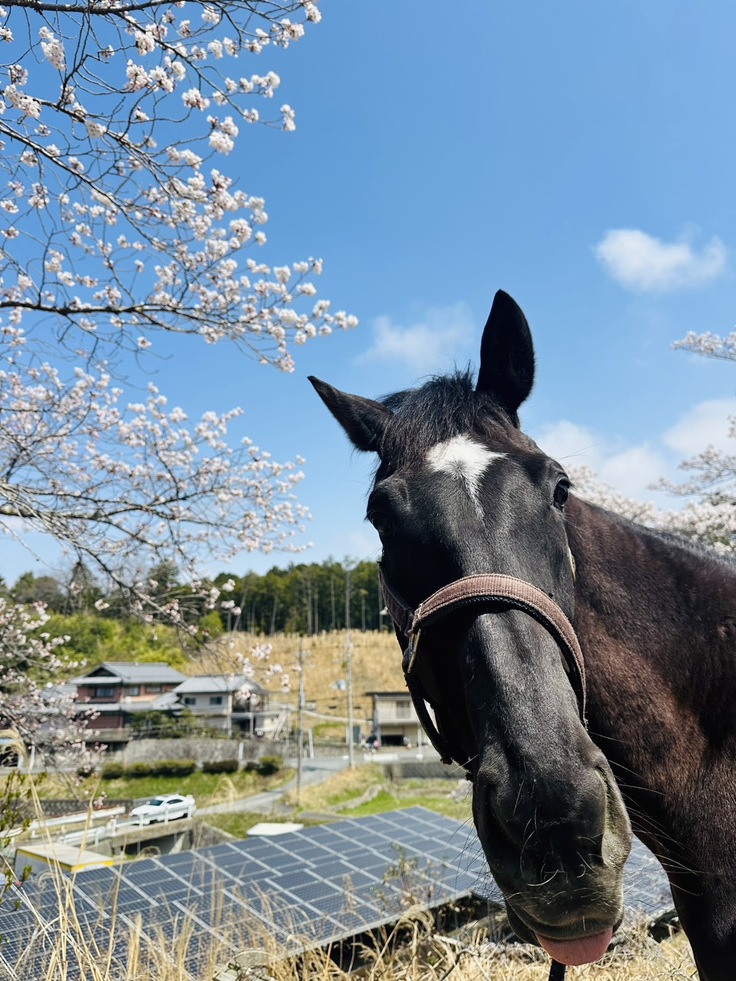栗東stableもようやく暖かくなり桜が咲いてとてもきれいです🐴🌸(ロックユー)