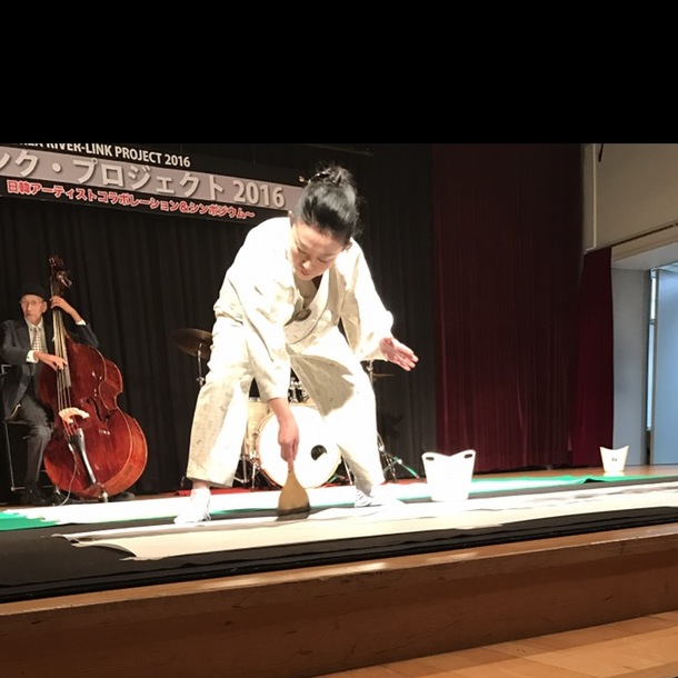 10月18日予定通りソウルの日本大使館・公報文化院でリバーリンク・プロジェクトが始まりました。オープニング・イベントは3階のホールで開催。14:00からと18:30からの2部構成。14:00からの部では最初に私の開会のスピーチに続き日本大使館から長嶺大使の祝辞をいただきました。井島正雄さんが日韓友好促進の願いを込めて本日のために作った「ムグンファ」を「さくら」に続けて演奏。その音楽に合わせて栗原光峰さんが書道のパフォーマンスをするという形で始まりました。その後 柳和暢さんが笹を使いライブペインティング。贅沢な時間を堪能することができました。2階のギャラリーでは日韓12名のアーティストの作品展示。絵画、写真、書道、立体作品、映像作品が並びました。打ち上げは日韓米の50人が参加し、3次会はジャズのライブハウスに20人集い深夜まで楽しい時間を過ごすことができました。本当に充実した濃い一日でした。