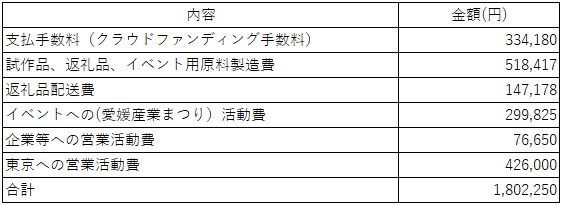 頂いた、支援金は試作品、イベントへの出店、東京への営業活動へ使わせていただいております。