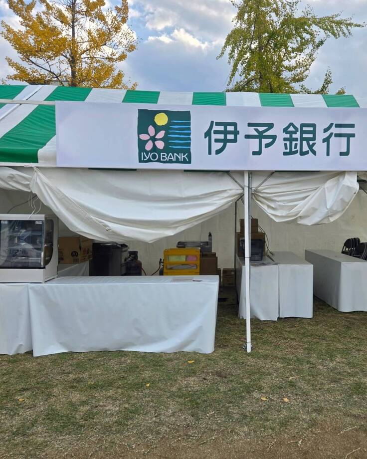 伊予銀行様のご協力をいただいて、伊予銀行様ブース内でエイの唐揚げ、サメフライを販売いたします。