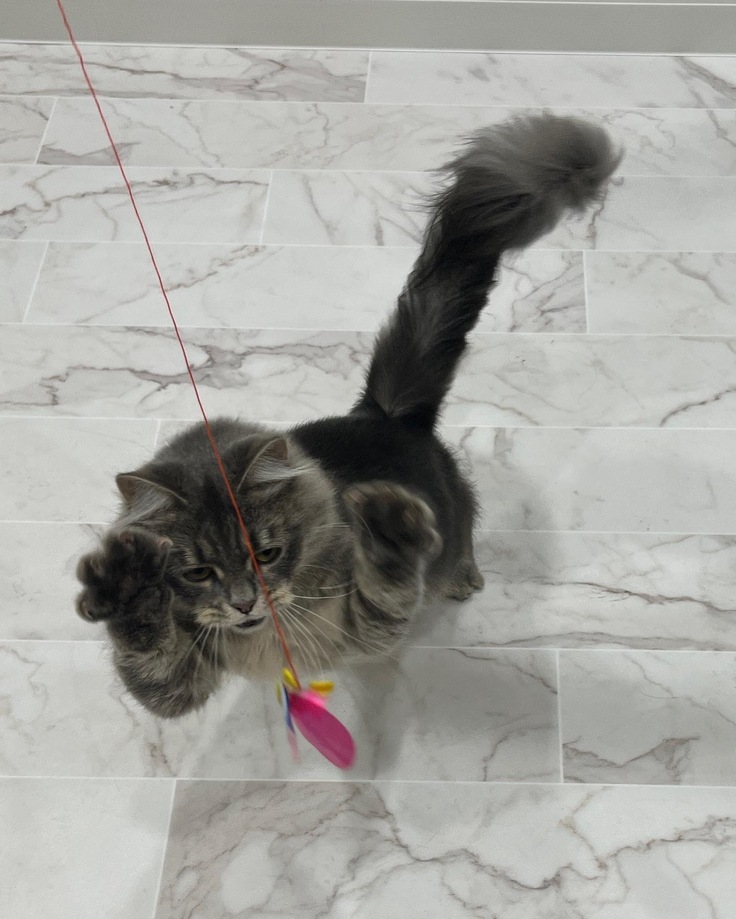 それをわかってか、ロアから飼い主(オス)に猫パンチと本気噛み本気ケリケリが炸裂していました😂😂