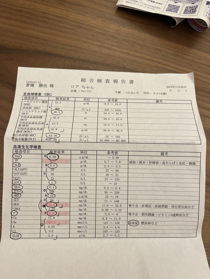 今は全く体調に出るほどではなく、とっても元気いっぱいなので、体調に心配はないけど、血液検査の値的に見ると腎臓値が心配とのことです。