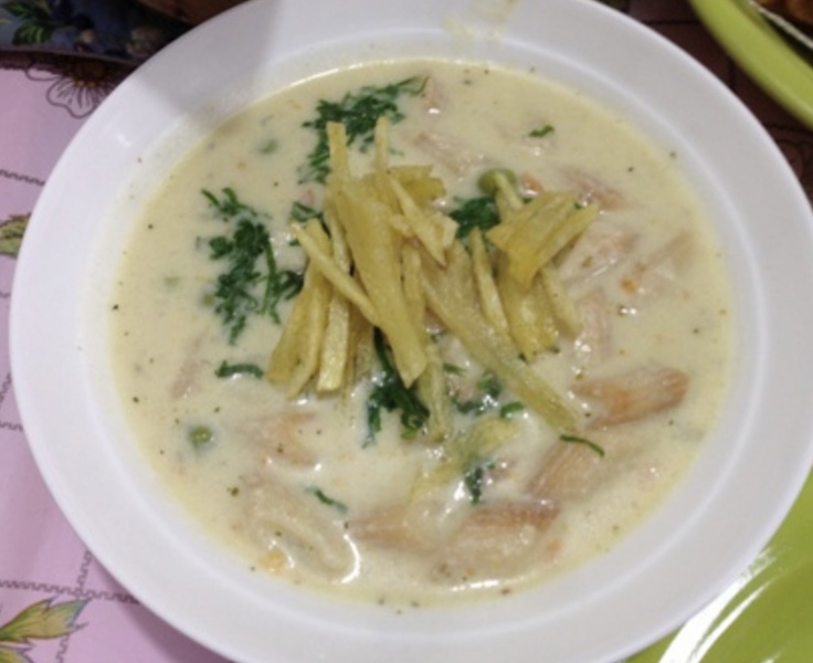 ソパデマニ ピーナツをミキサーにかけて煮込んだスープです。シチューのようで美味しいです。