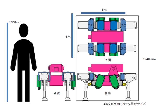 その結果を反映した鳥獣対策仕様機「かみやぎ」、対クマ用途を想定すると、思ったよりもかなり大きくなり、まずは動物型の形状で威嚇を行える基本機能のみの暫定的な仕様(移動せず、脚の動きのみ)で完成しました。移動補助用の車輪など、まだ実装していない装備もありますが、その一方で機械学習によりクマ等の画像認識の端緒をつける等、想定よりも進んでいる部分もあります。今後、屋外での試験運用にて、徐々に性能を高めてゆく予定です。