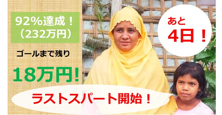 あと4日で残すところ18万円です!本当にありがとうございます。