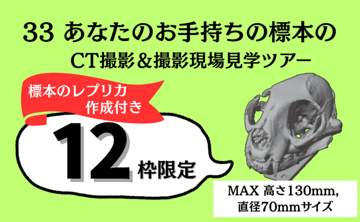 残り期間もわずかではございますが、博物館を大切に思ってくださり、標本の魅力を楽しんでくださる皆様に「お手持ちの標本のCT撮影」ができるリターンをご用意しました!
