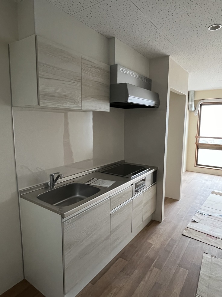 キッチンなどの水回りのものを設置され、どんどん居室らしくなってきました。