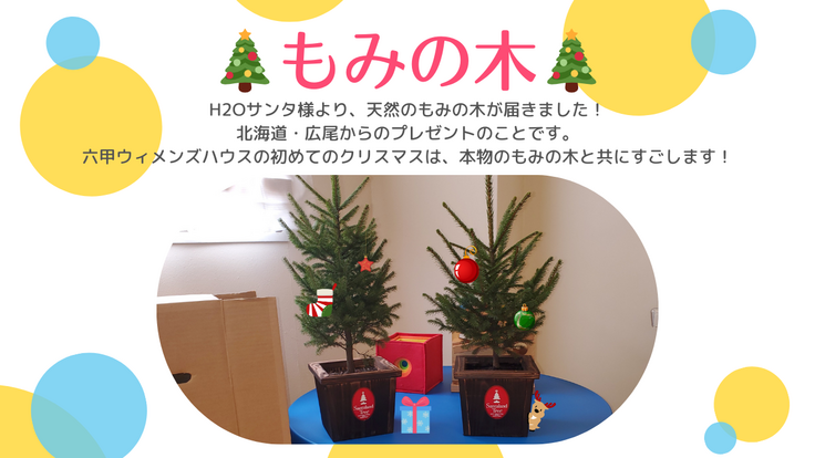 H2Oサンタ様より、天然のもみの木が六甲ウィメンズハウスに届きました!