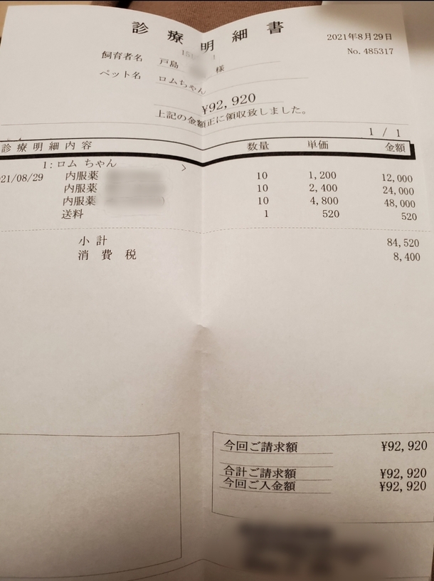 改めて薬だけでもこんなに高額なんだなと感じます。