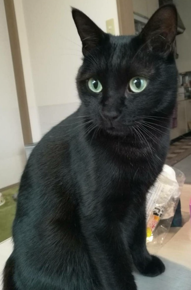 黒猫のルート(7歳)と暮らしています角 美穂と申します。小さい頃から猫と共に生活してきたので、猫を保護するようになりました。