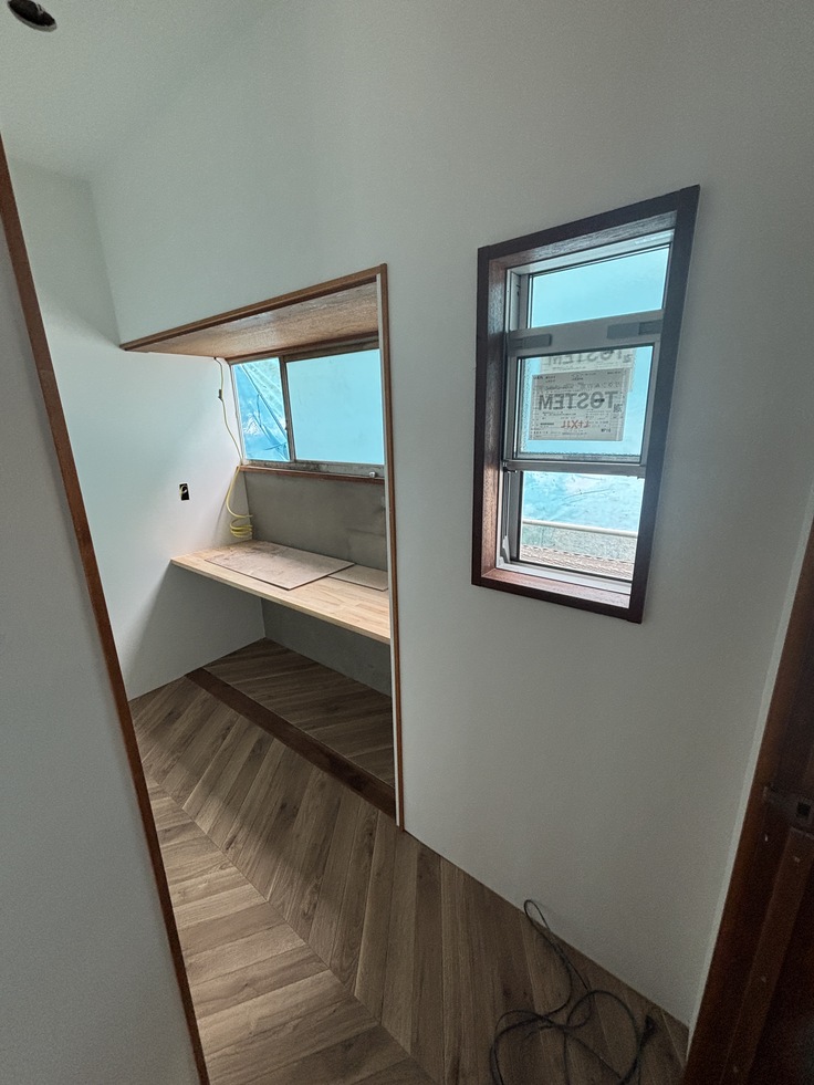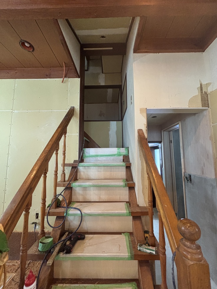 ▲棚の色味が特徴的だった薄暗い階段もちょっと明るくなりました。