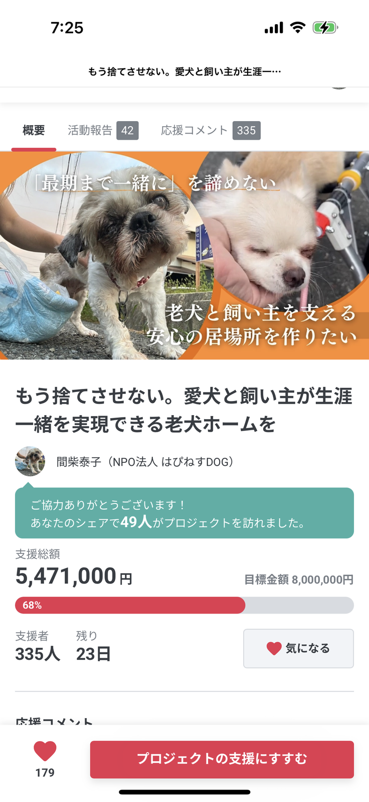 『クラファン失敗してもやる人生かけた老犬ホーム計画、支援で未来を変えてください!』
