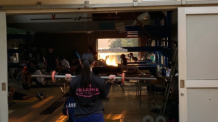 2024年4月1日現在、部員は男子23人・女子16人の計39人で活動しています。主な活動拠点は学校から自転車で5分ほどの場所にある大村湾に面した艇庫ですが、8年前から日常的にバスで約30分かけて諫早市にある本明川に移動し、水上練習を行うようになりました。現在、大村の艇庫は主に陸上トレーニングの場所として利用しています。
