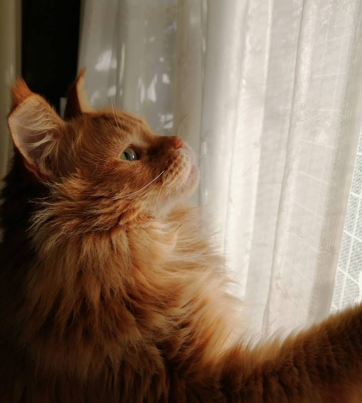 ロイは猫の中でも大型のメインクーンという種類になりますが、大好きなメインクーンを
