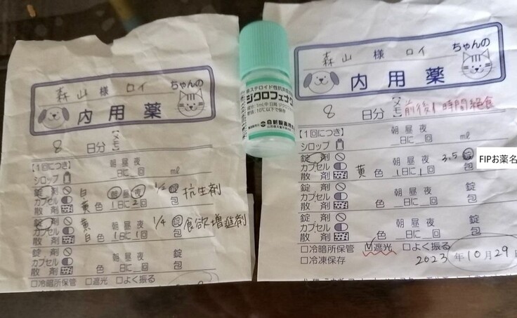 翌日は点滴をしてもらい、日曜の朝、予約の取れたFIPに対応する病院に向かいました。