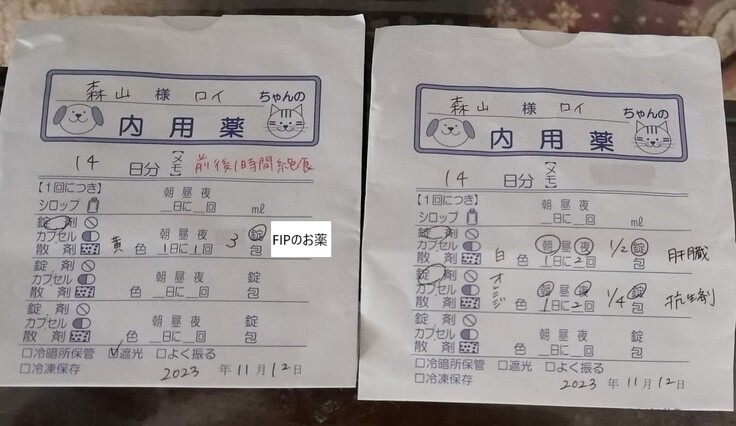 以後はFIP3錠を1月20日まで続けました。そして抗生剤、肝臓の薬も終了しました。