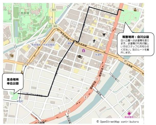 ・辛島公園~新市街アーケード~下通アーケード~上通アーケード~白川公園