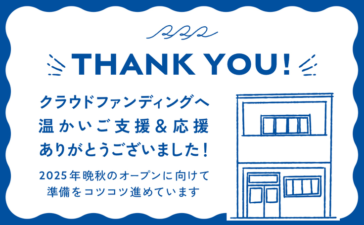 リターンをお送りする過程で、改めてみなさまからのメッセージも読ませていただき、本当に励みになっています。改修が終わりましたら、ぜひお立ち寄りいただけましたら幸いです。みなさまとお会いできる日を楽しみに、オープン準備を進めていきたいと思います!