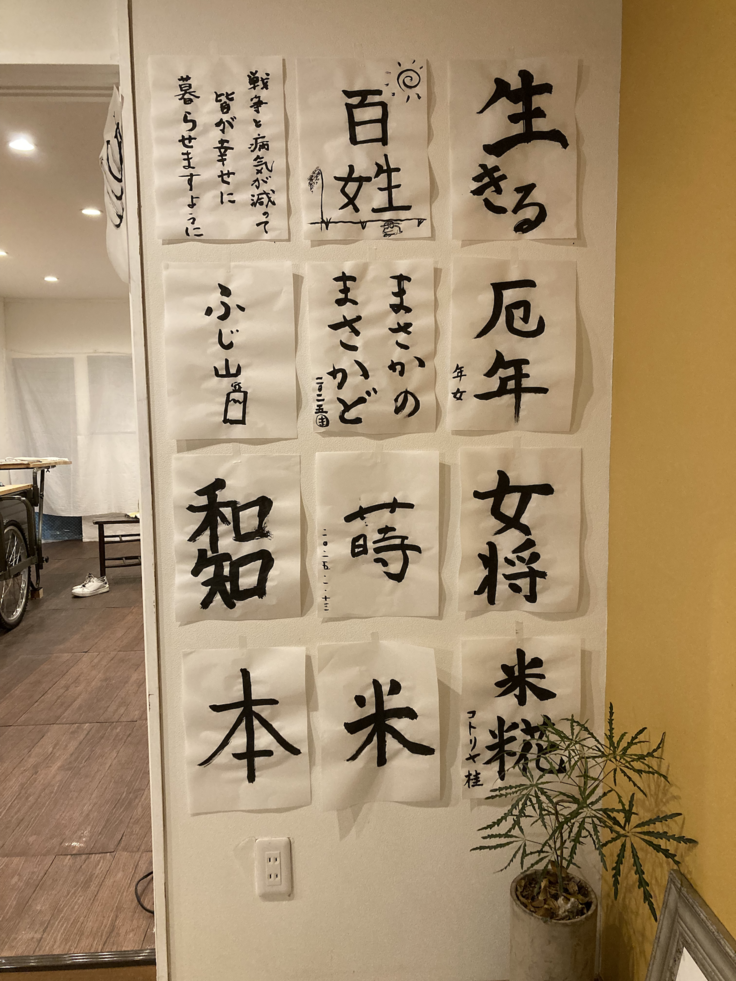 一月中は引き続き書き初めコーナーも置いているので、ご自由に書き初めください。改めて筆をもつのも楽しい時間ですね。