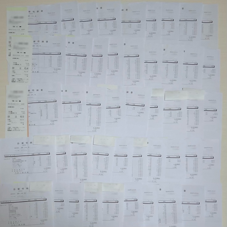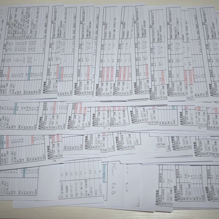 この半年間でルウちゃんは50回以上病院に行っていました。写真はこれまでのルウちゃんの治療の領収書と血液検査の結果です。(写真に載せられなかったものもあります)