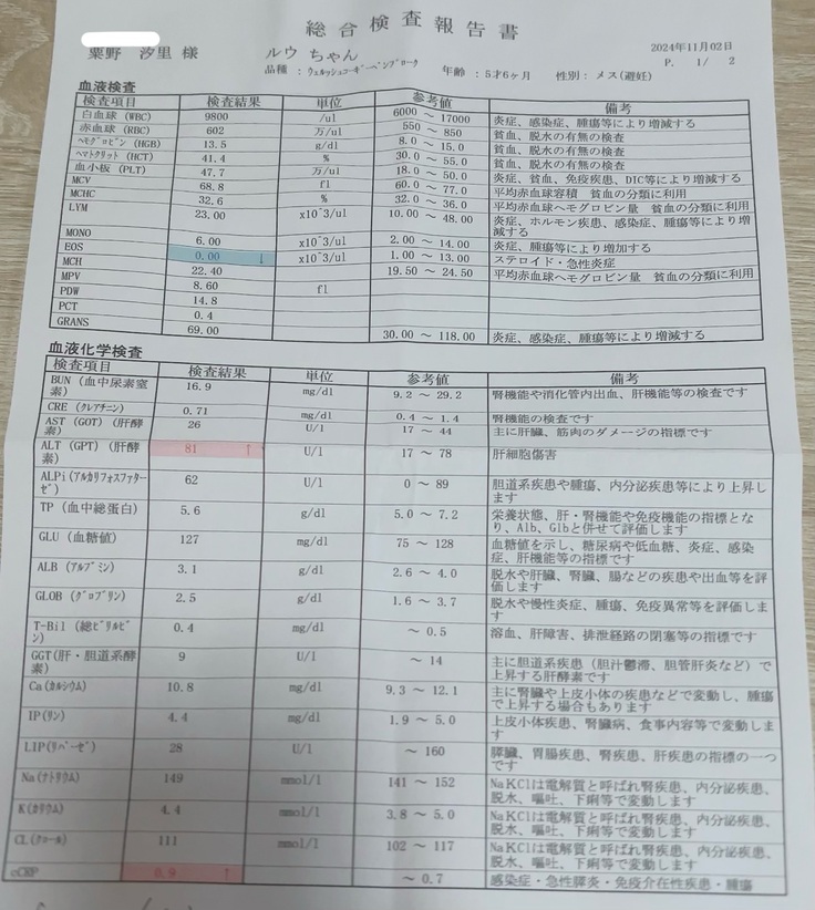 ついに肝臓の数値も正常値に!体力はまだ戻っていないですが元気そうにしている日が多くとてもうれしいです。