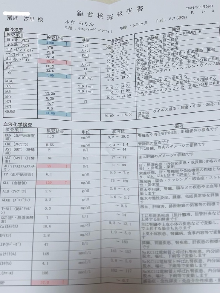 ルウちゃんですが、昨日は病院へ行き経過観察の検診と診察をしてもらってきました。今はちょうど白血球が下がりきっているところで1日のほとんどを寝て過ごしています。