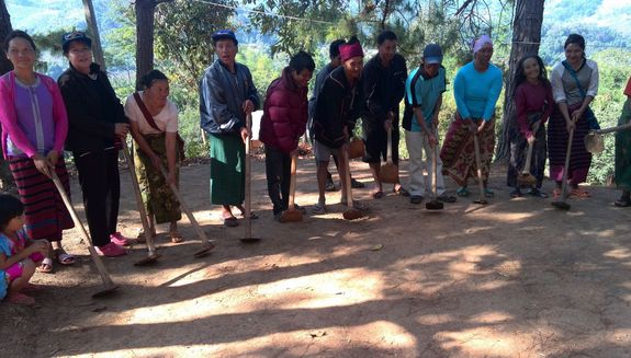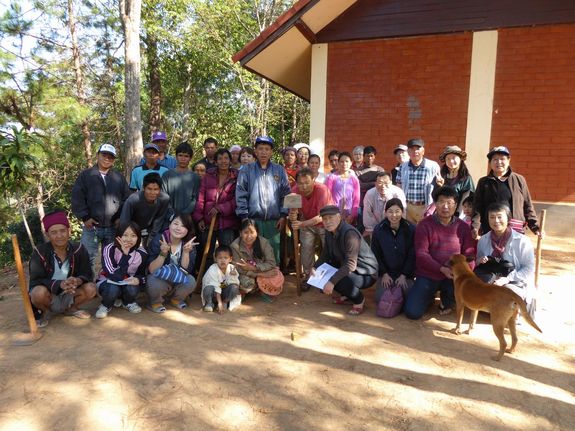 村ではお金を待っていた。乾季の終わる4月末までには工事をしたかったのだ。このクラウドファンディングで集めたお金はもちろん材料費のみである。後の工事費は村人たちの自前である。中国正月をひかえた忙しい日に村人たちは集まってくれ「鍬入れ式」をやったのだ。私たちは13名、村人代表約20名。