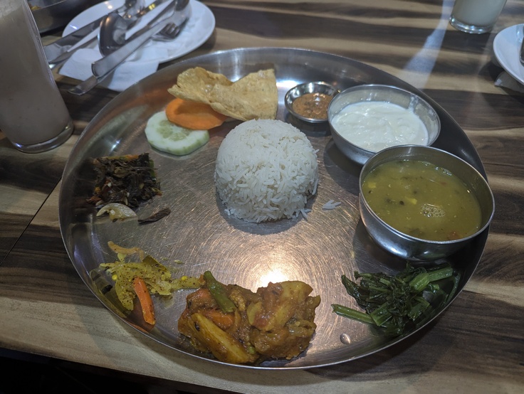 ダルバートが食卓に並び、ルームメイトとホームステイ先のご家族と一緒にいただきます🙏