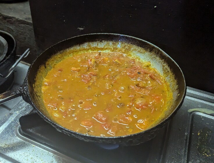 初日の夜、家に戻るとキッチンからいい香りがしてきました。のぞいてみるとお母さんが何かを作っていたので、話しかけてみることにしました(お母さんは英語が話せます)。何を作っているのか聞いてみると、料理名は聞きそびれたのですが、トマトと玉ねぎにチリソースなどを加えて煮込んだものとのこと。間違いなくおいしいやつ😳✨ その後もお互いの国の文化や言葉について話しつつ、調理の様子を見学させてもらいました。