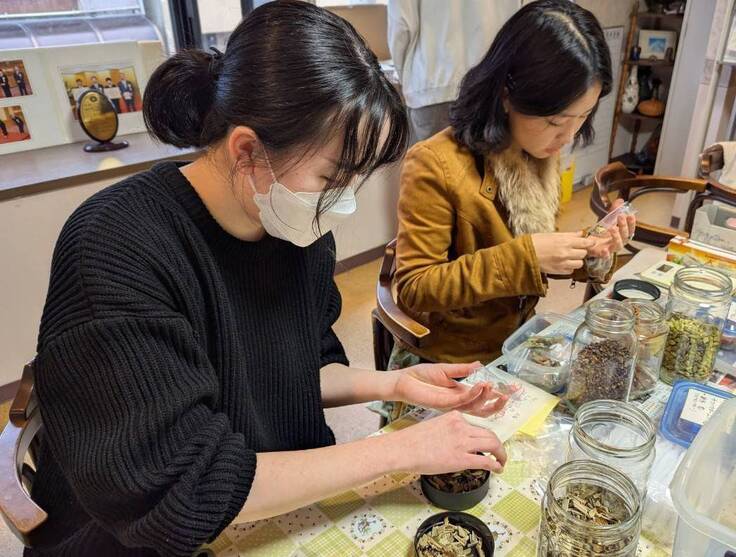 ココナッツパウダーを小袋に分けたり、複数のスパイスを混ぜたりしました。