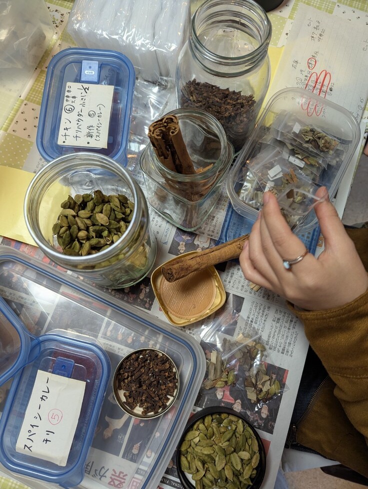 カルダモンやシナモンなど粉ではない生のスパイスを見るのは初めてで、スパイスの効果を勉強することができました!