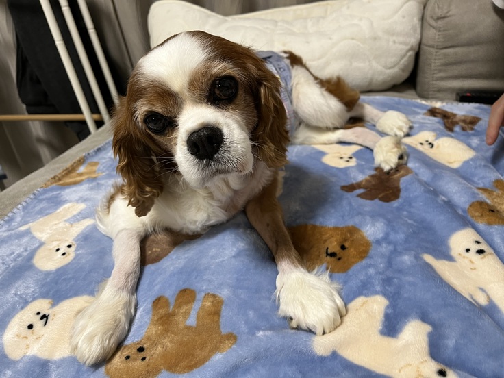 お昼過ぎにルイの左アバラを撫でていたら何だかポコッとするものがあり、慌てて心臓病の手術をした病院に電話をかけたのですが、診察は午前中でギリギリ間に合わず💦