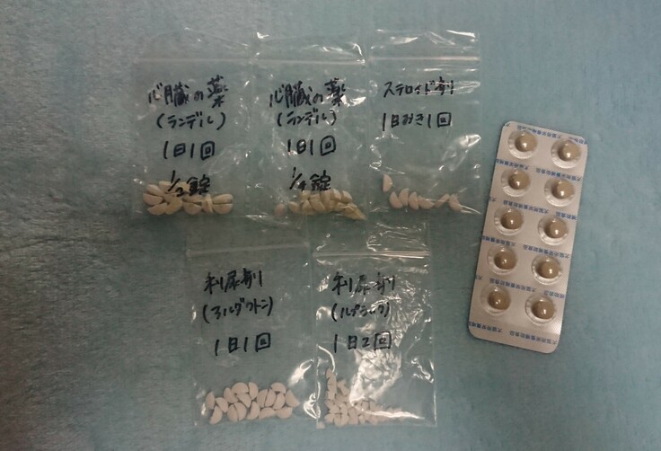 今までの薬2種類に加え、ステロイド剤と利尿剤(2種類)合計5種類の投薬が始まりそれまでは6000円だった毎月の薬代が16000円になりました。