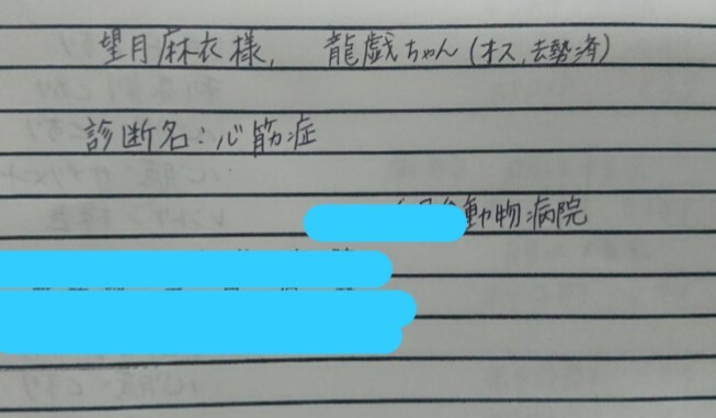 しかし2016年の夏、そろそろシニアになる7歳に健康診断に初めての連れていった時の事…レントゲンで心臓の肥大が見られ