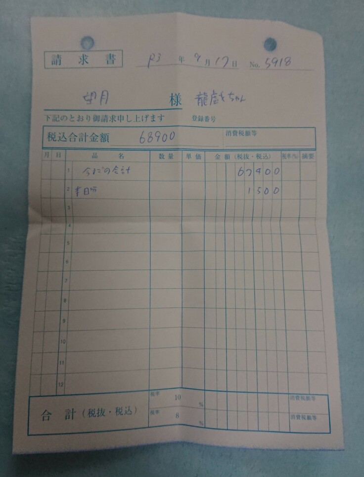 ・待ってもらっている請求分69800円