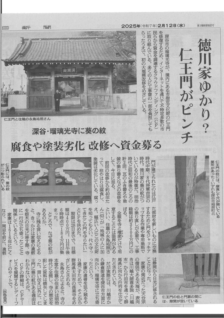 2月12日付けの朝日新聞 埼玉版で大きく取り上げていただきました。