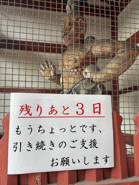 残るところあと3日しかありません。引き続きのご支援ご協力よろしくお願いいたします。