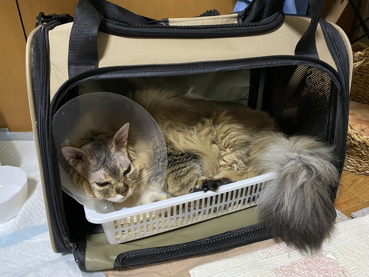 (キャリーバッグに警戒しないよう、通院の数日前から室内に置いてハウスのようにしておきました。