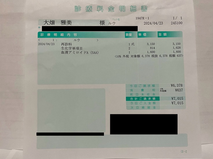 (2つ目の活動報告にも載せていますが、この日の診療明細書です。)