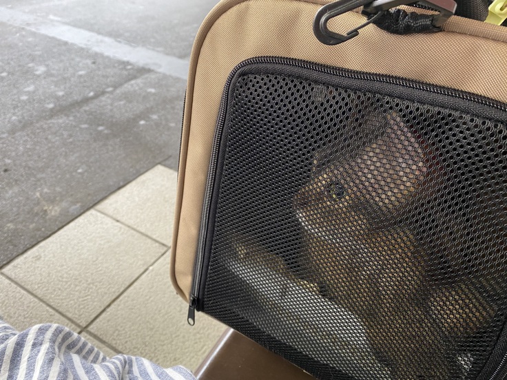 キャリー内に敷いていたペットシートはかきかきしてどかされていましたが、思った以上に落ち着いていました。