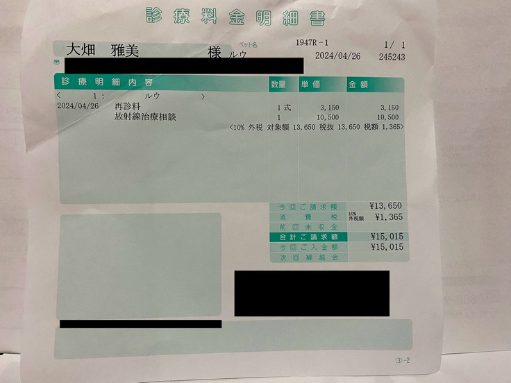 ルウの診察や治療もないし、説明だけなら数千円かな?と思っていた自分が恥ずかしくなりました…🙈