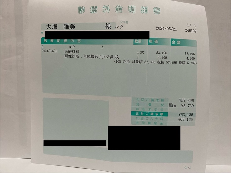 2回目の活動報告に載せましたが、今回のルウの手術・入院費の一部の金額が退院時に決まっていませんでした。
