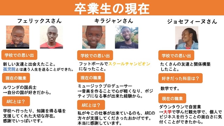 「ルワンダ子ども支援基金」の支援を受けて学校に行くことができた子どもたちは今では成長して、その次の世代の子どもたちを応援しようと動いています。